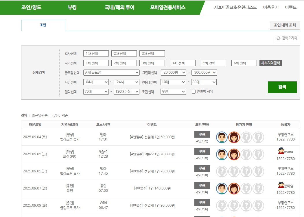 - 실시간 조인/양도 게시판 (갑작스런 일정 변경 시 유용)