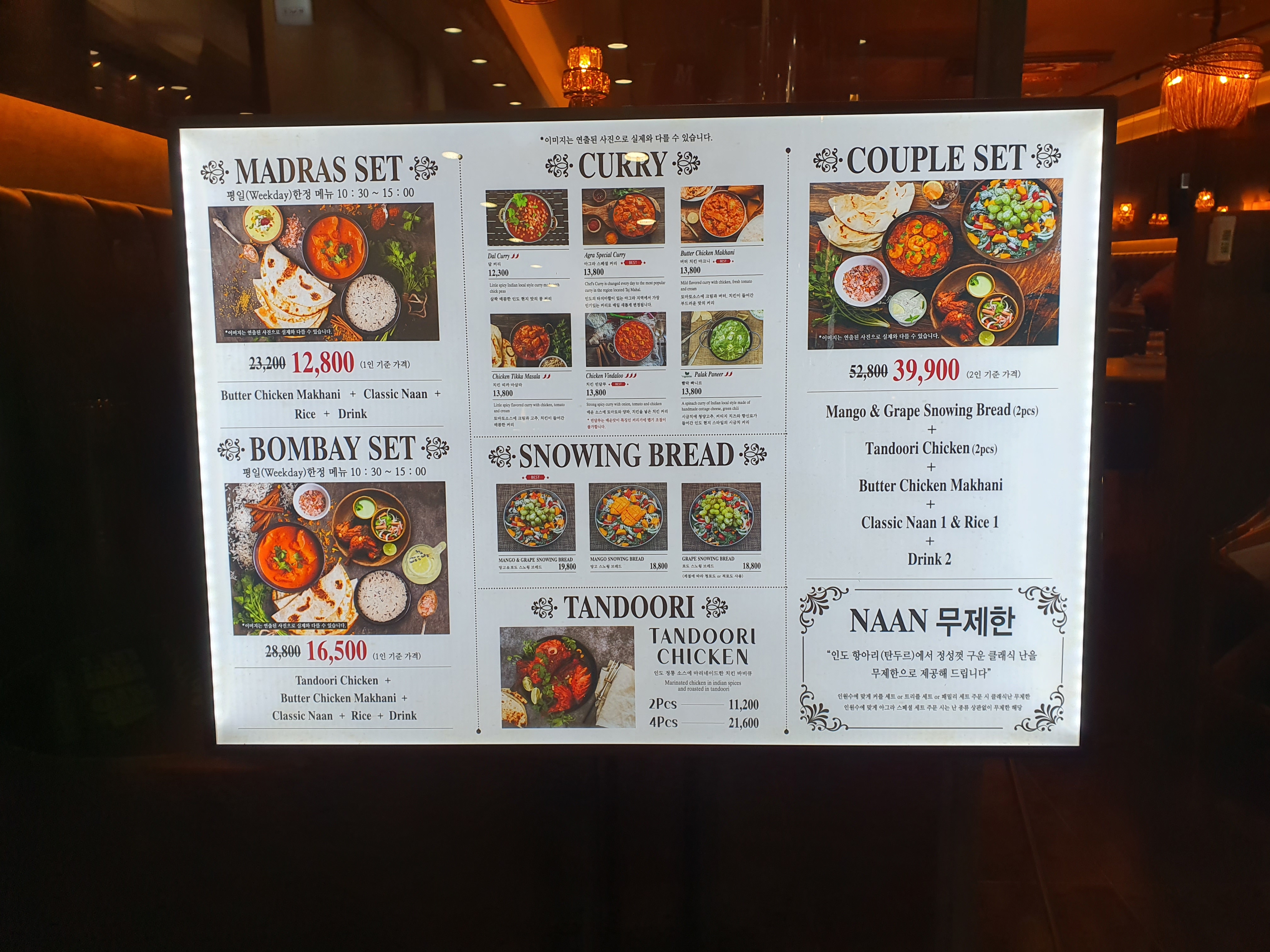 커리와 힘께먹는 난을 좋아하는 쥐띠남매아빠 아그라 메뉴판부터 확인합니다.