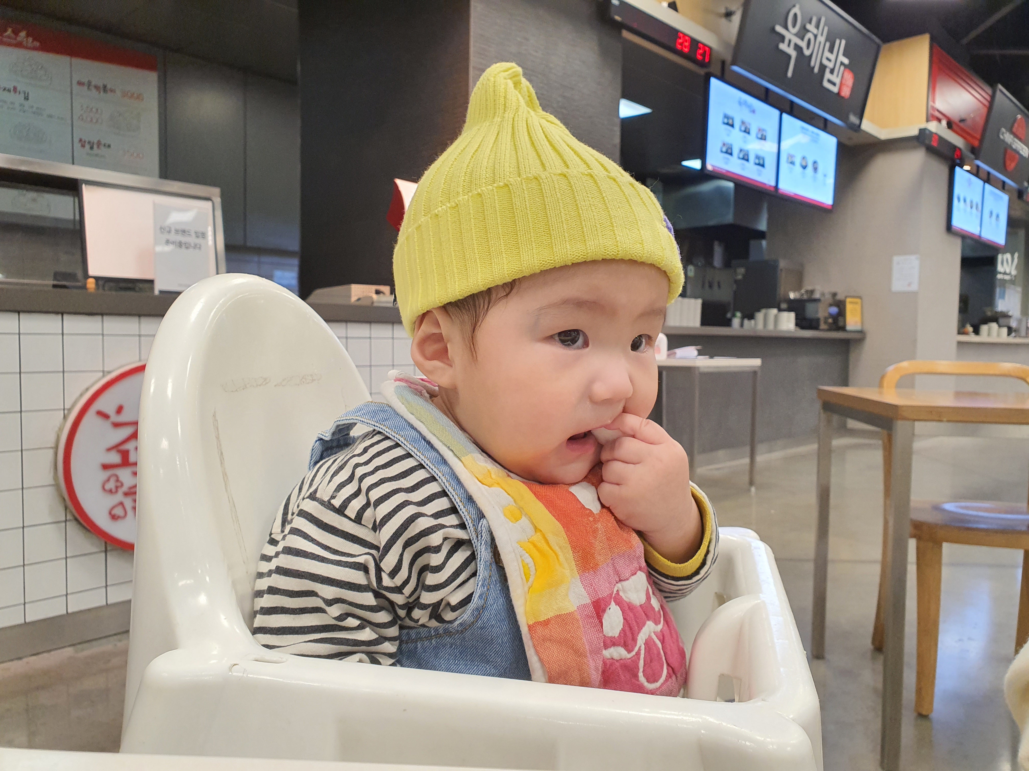 쥐띠아들 아빠, 엄마, 누나 먹는 모습 보다가 과자하나 먹으면서 살짝 쳐다봐 줍니다.