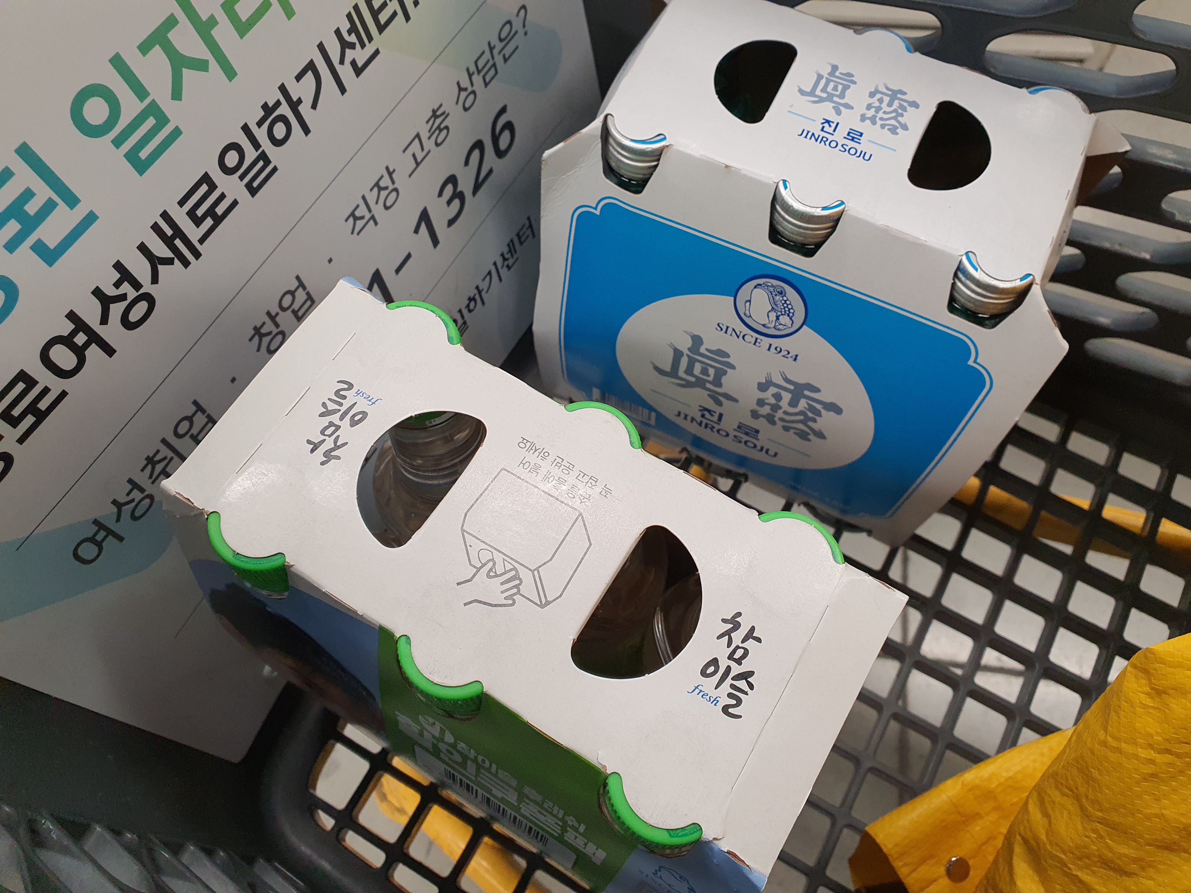 맛있게 저녁먹고 가장먼져 구입한 진로이즈백, 참이슬후레쉬 쥐띠남매 아빠, 엄마 개인취향에 맞게 하나씩 담아줍니다.