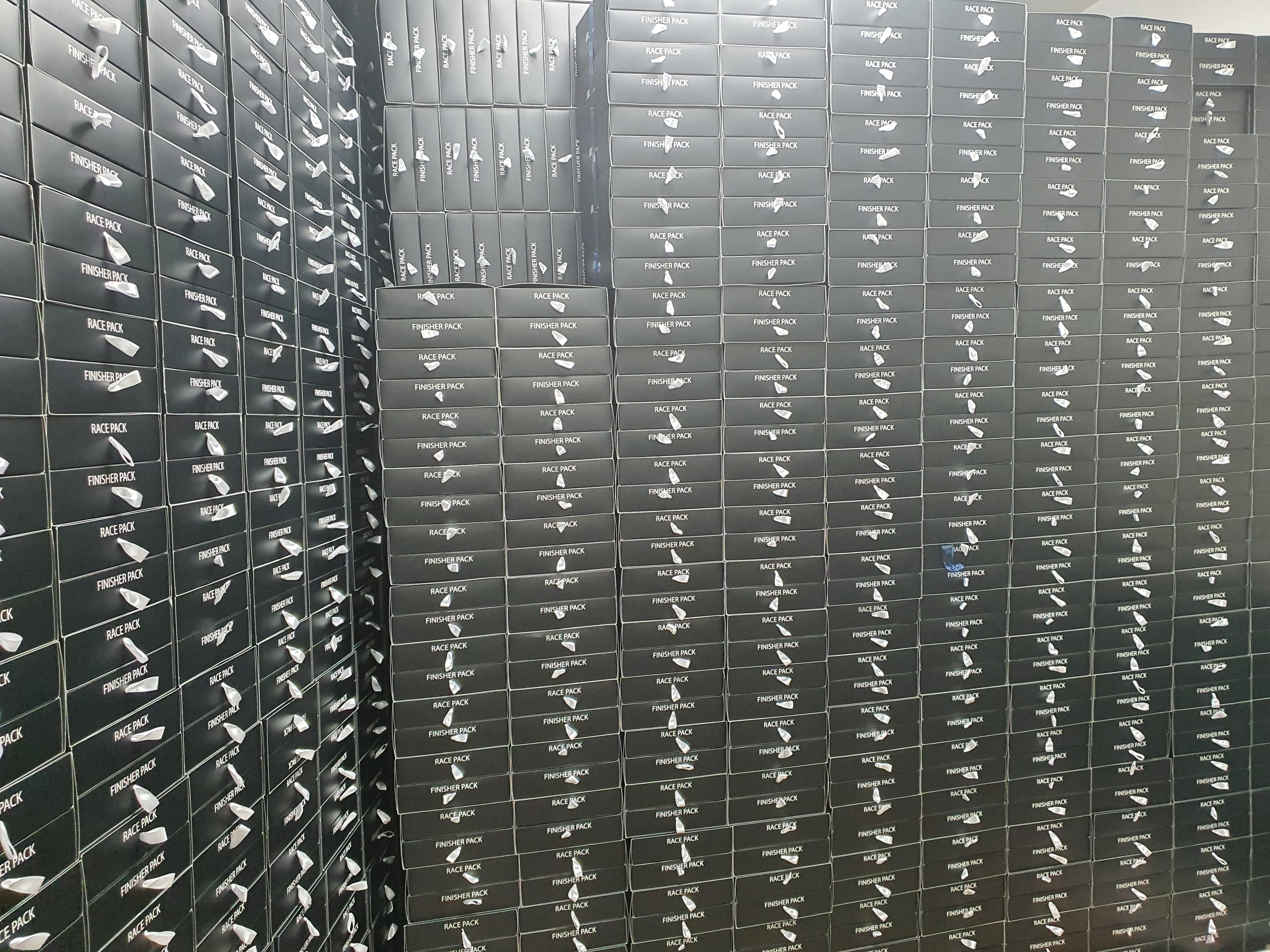 정말 빽빽하게 쌓아 놓은 뉴발란스 언택트 레이스 패키지 박스 입니다.